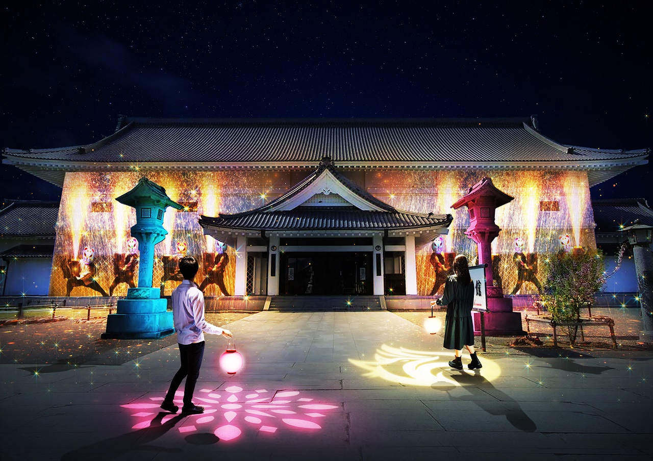 โทโยคาวะได้พัฒนาภาพฉายที่มีเอกลักษณ์มาจากลายของดอกไม้ไฟ เทซุตสึฮานาบิ (Tezutsu Hanabi) ดอกไม้ไฟแบบดั้งเดิมที่ปล่อยโดยถือปืนใหญ่ไม้ไผ่ไว้ในมือ แปลงโฉมตัวอาคารด้วยศิลปะการฉายแสงเพื่อบอกเล่าเรื่องราวของวัด สัมผัสได้ถึงบรรยากาศเทศกาลฤดูร้อนไปพร้อมกับการสักการะเทพอินาริ