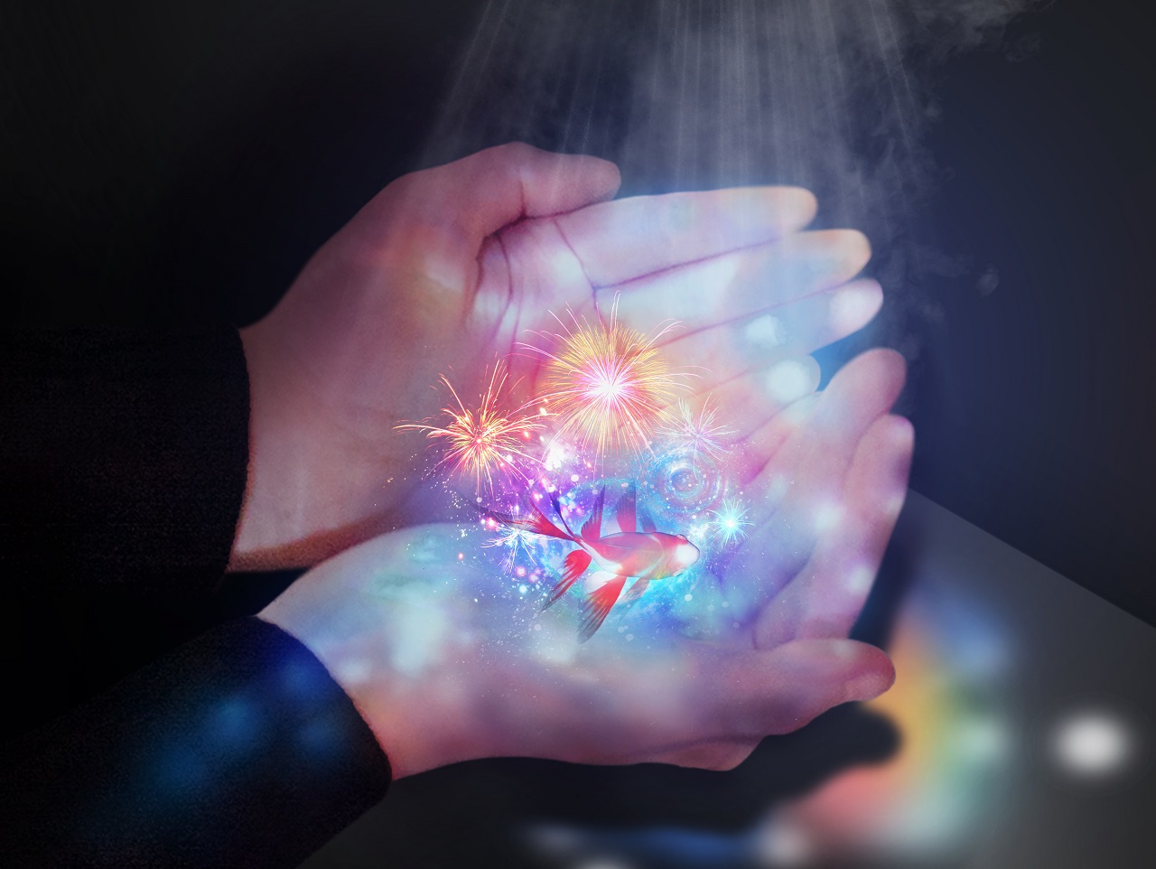 ภาพฉายแสงการสักการะด้วยดอกไม้ไฟ ณ พิพิธภัณฑ์จัดแสดงสมบัติประจำวัด