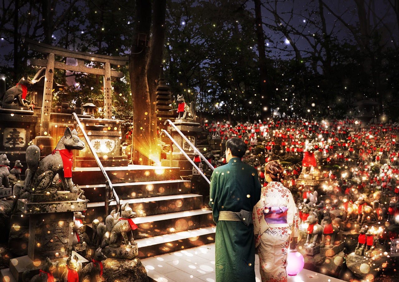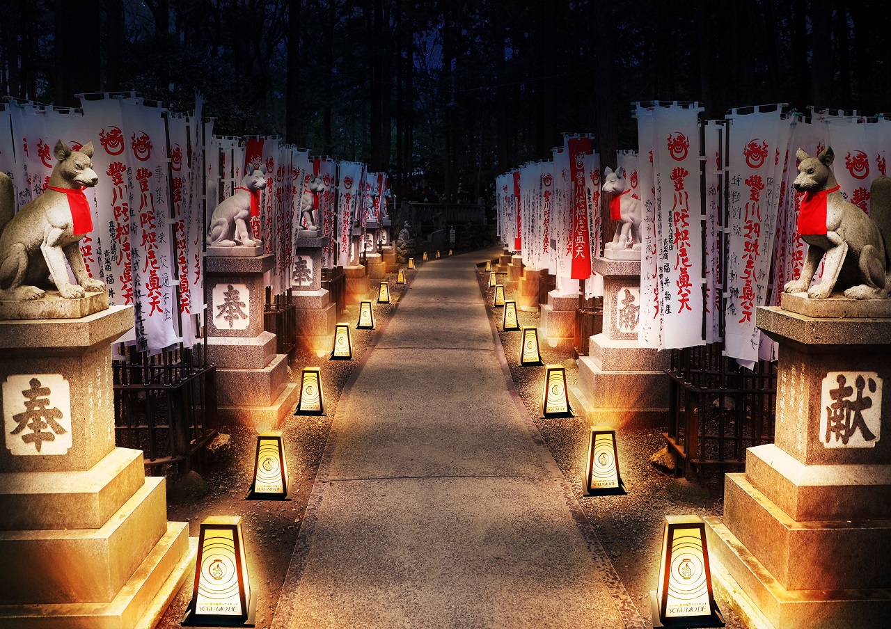 การจัดแสดงถวายเครื่องสักการะแด่รูปปั้นจิ้งจอกกว่า 1,000 ชิ้น ด้วยการตกแต่งรูปปั้นด้วยแสงไฟเป็นครั้งแรก ความสว่างของแสงไฟที่ส่องกระทบไปยังเหล่าจิ้งจอกอย่างอ่อนโยนที่เขาแห่งสุนัขจิ้งจอกเรโกซูกะซึ่งเป็นสัญลักษณ์ของวัดโทโยคาวะอินาริ