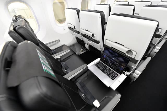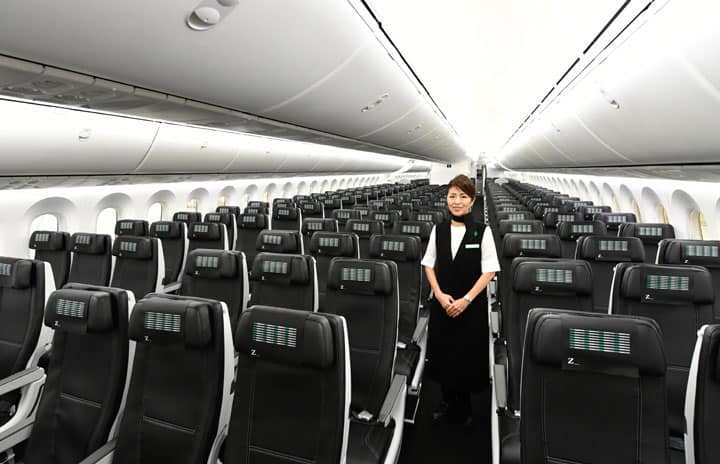 สำหรับรุ่นเครื่องบินนั้นจะเป็น BOEING 787-8 ที่สามารถรองรับผู้โดยสารได้ 290 คน ซึ่งดีไซน์ภายในเป็นโทนคอนทราสต์ระหว่างขาว-ดำ โดยเบาะที่นั่งจะเป็นสีดำ ส่วนชั้นเก็บของเหนือศรีษะและผนังจะเป็นสีเทาอ่อน แม้จะไม่มีหน้าจอโทรทัศน์ให้ดู แต่มีช่อง USB ให้เสียบเชื่อมต่อกับแท็บเล็ตหรือโทรศัพท์มือถือได้